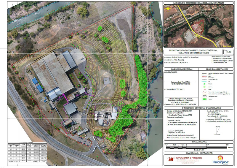 Levantamento cadastral realizado para base de projeto de drenagem e ampliação da Fábrica da Piracanjuba – Três Rios/RJ.